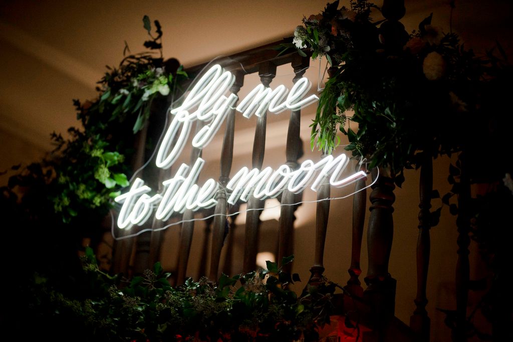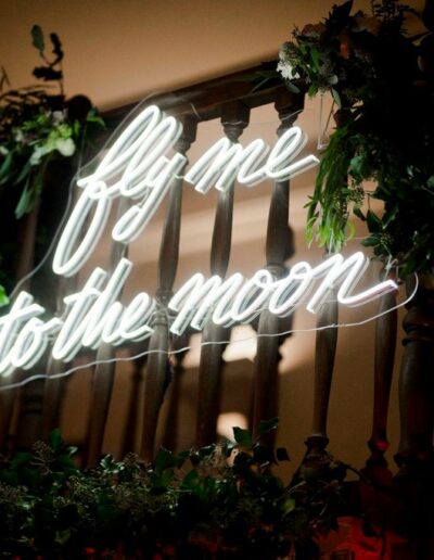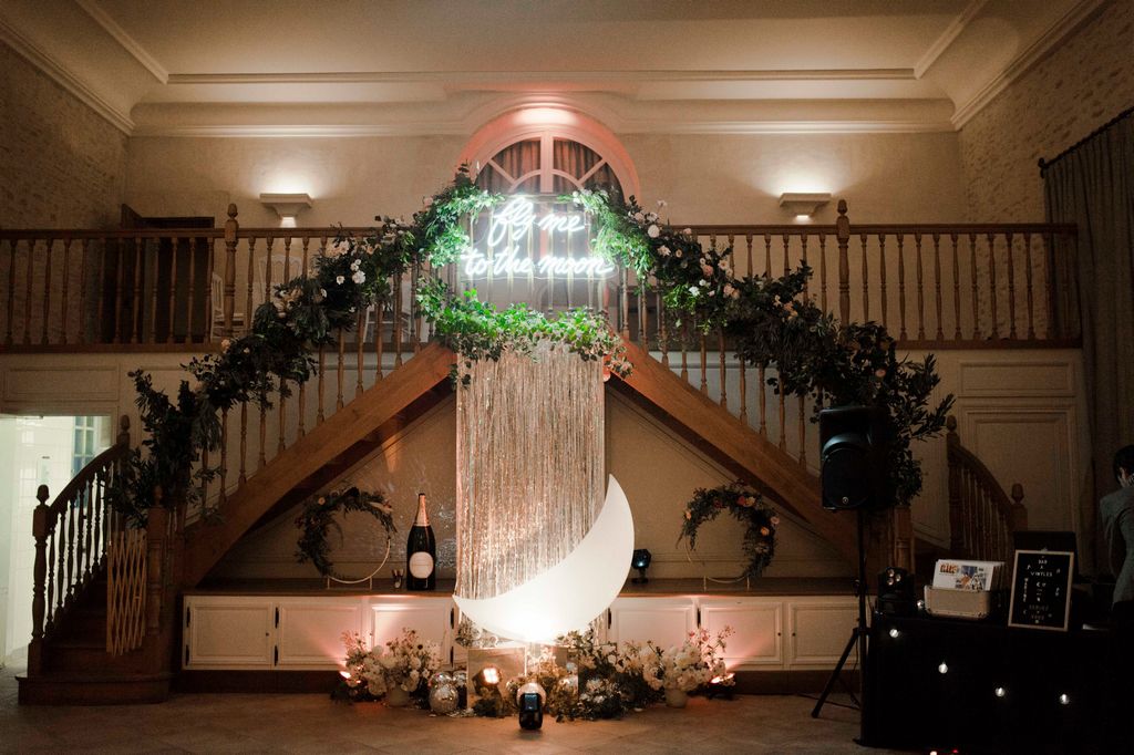 Une soirée en bordeau, rouge et noir, plus intense, enveloppante, résolument audacieuse. Et comment oublier le néon « Fly me to the moon », signature du thème et éclat lumineux de leur soirée.